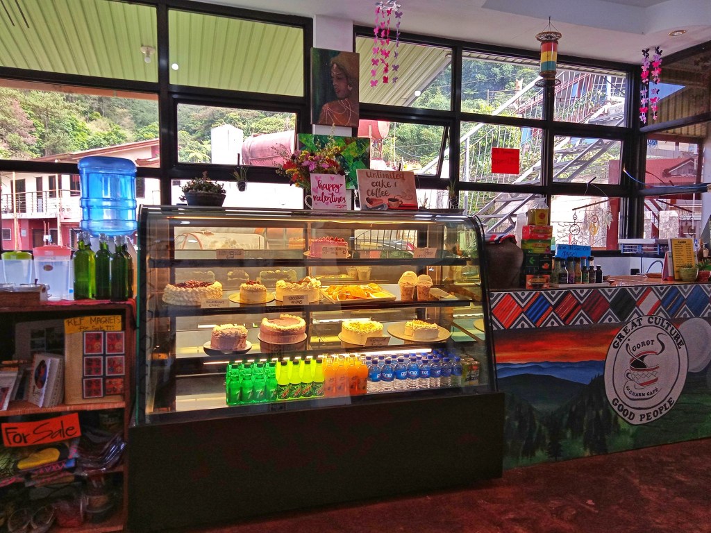 The cafe has a cozy & homey ambiance and upon entering & staying at the cafe, you will also feel the Igorot culture. It has lots of traditional wall paintings, photos displayed for a cause and others.