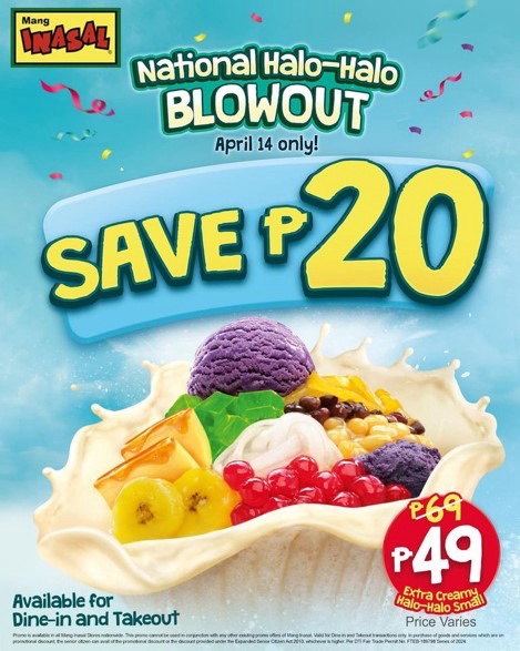 Mang Inasal is treating all customers at its almost 600 stores across the Philippines to a P20 discount for Extra Creamy Halo-Halo Small this April 14 through the National Halo-Halo Blowout.